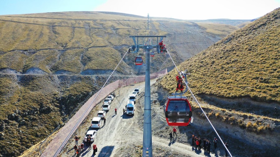 Ekiplerimiz aynı zamanda teleferiklerde meydana gelebilecek aksilikler neticesinde orada bulunan misafirlerimizi, sağlıklı ve problemsiz şekilde tahliye etmek için de özel bir eğitim aldılar.